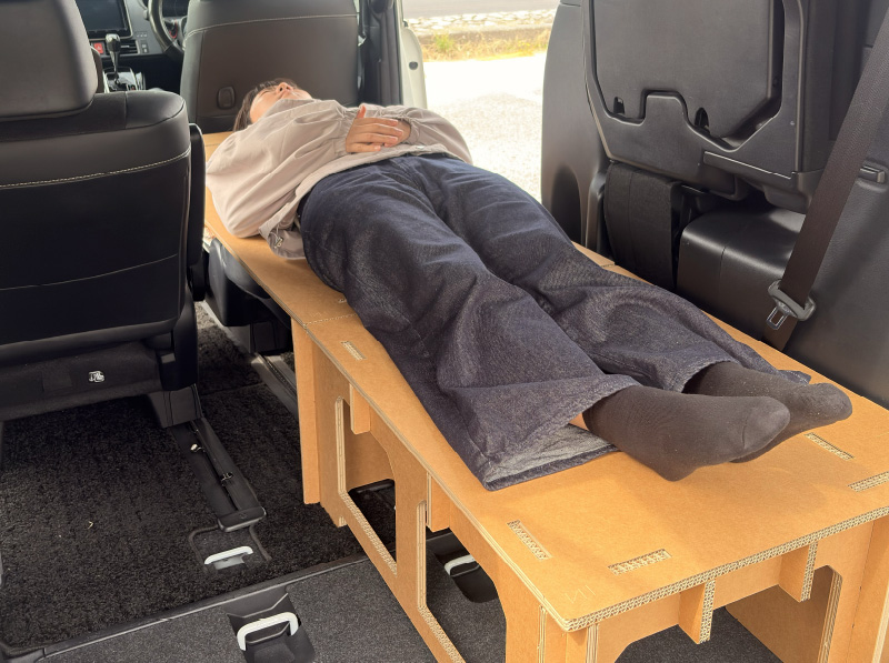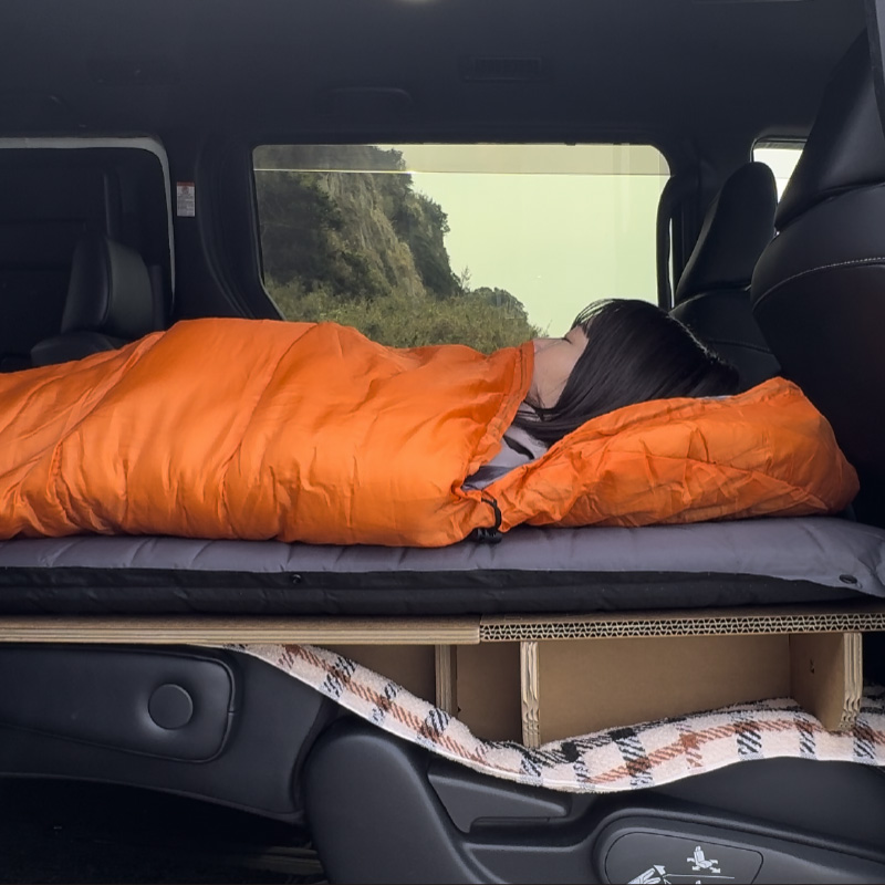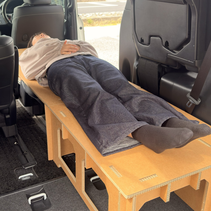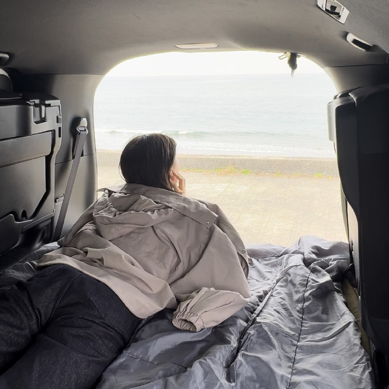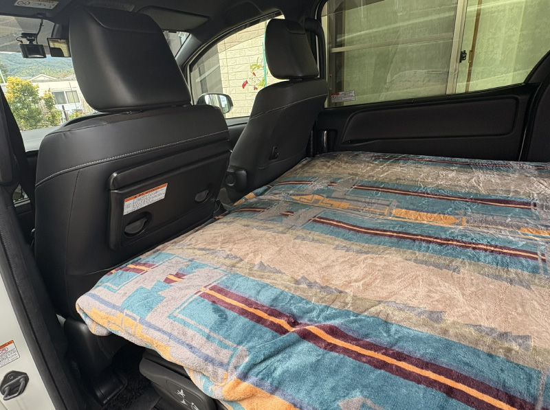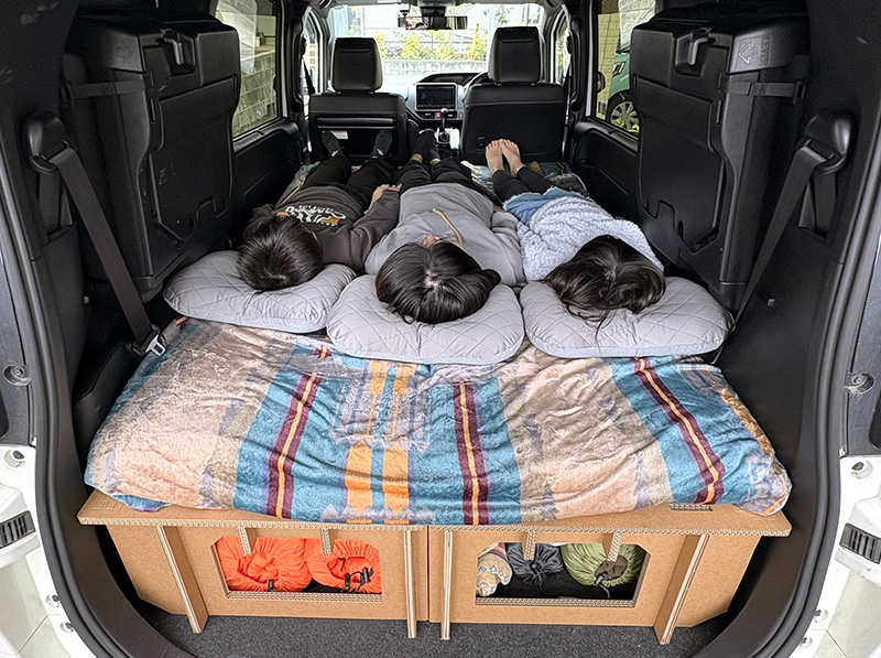 普段ご自宅でお使いの敷布団や毛布、掛け布団、そして使い慣れた枕をそのまま車に持ち込むだけで、立派なベッドルームが完成します。